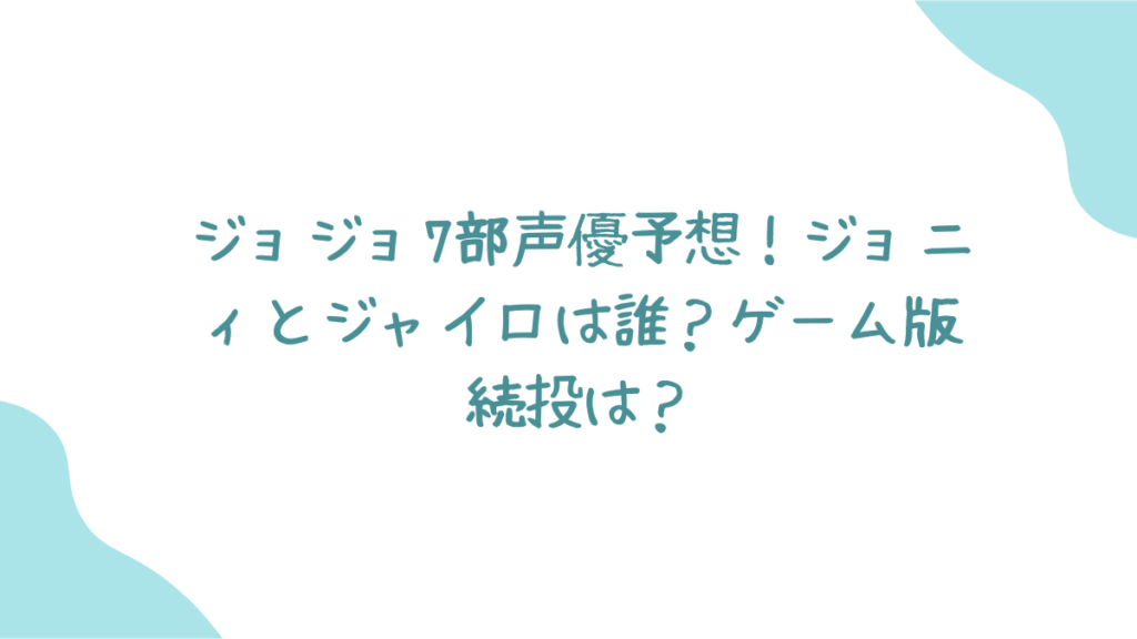 この記事では、現在飛び交っているファンの声や過去の事例、ゲーム版キャストの情報などを整理しながら、ジョジョ7部アニメの声優陣を大予想! 「あのキャラの声は誰がいい?」「ゲーム版から変わるの?」そんなあなたの疑問や期待に、深く切り込んでいきますよ。これを読めば、公式発表までの日々がもっと楽しくなるはずです!