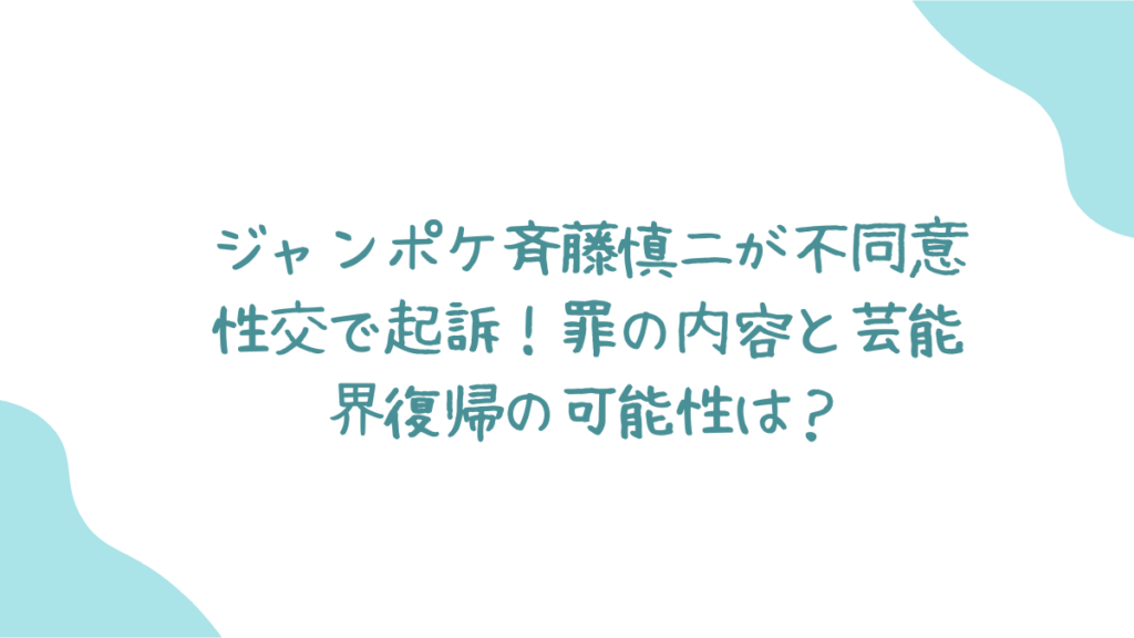 ジャンポケ斉藤慎二さんが不同意性交と不同意わいせつの罪で在宅起訴されたという衝撃のニュースが飛び込んできました。