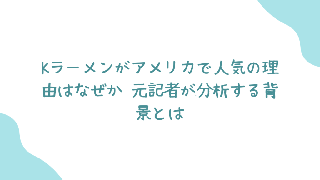 この記事では、なぜKラーメンがアメリカで人気となった理由を多角的に分析し、その背景にある構造的変化を考察していきます。
