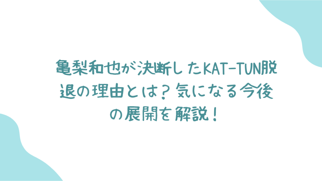 KAT-TUNの中核メンバーとして長年活躍してきた亀梨和也さんの脱退は、多くのファンにとって大きな衝撃となりました。