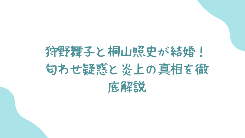 元バレーボール女子日本代表の狩野舞子さんと、WEST.の桐山照史さんが結婚を発表しました!しかし、その幸せなニュースの裏で、匂わせ投稿や報告形式をめぐり炎上や誹謗中傷が発生。