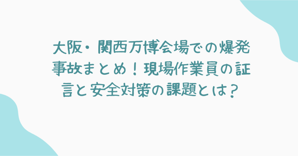 2024年3月、大阪市の関西万博会場で発生した爆発事故が、大きな波紋を呼んでいます。現場近くにいた男性作業員の証言により、当時の状況や爆発の原因が明らかになりました。