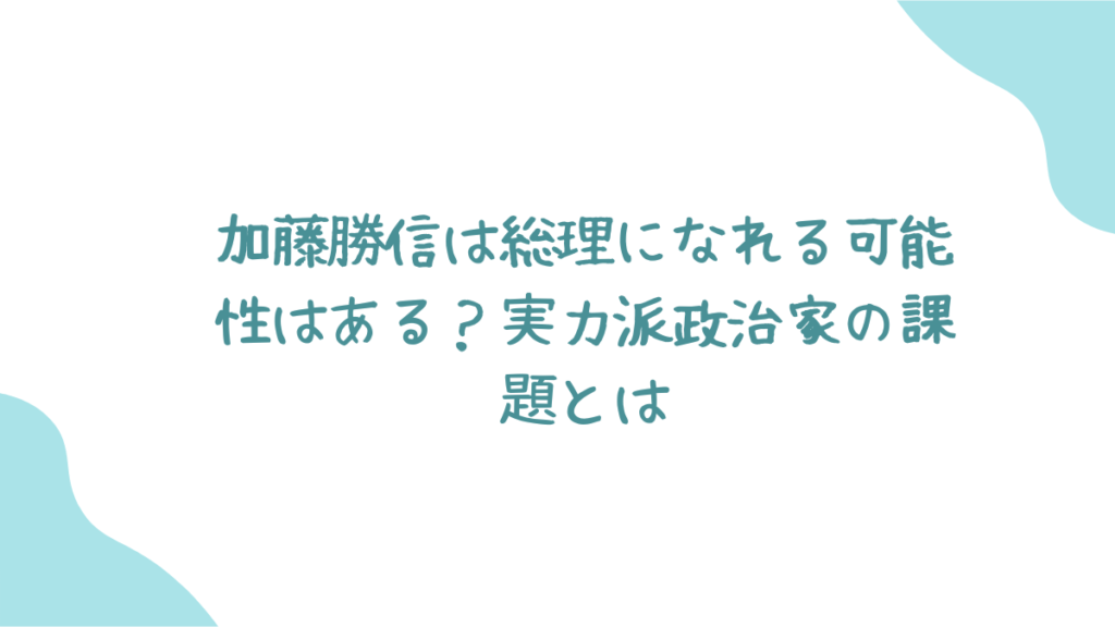 党内調整役としての期待が高まる中、加藤氏は総理大臣の座を射程に捉えることができるのでしょうか。