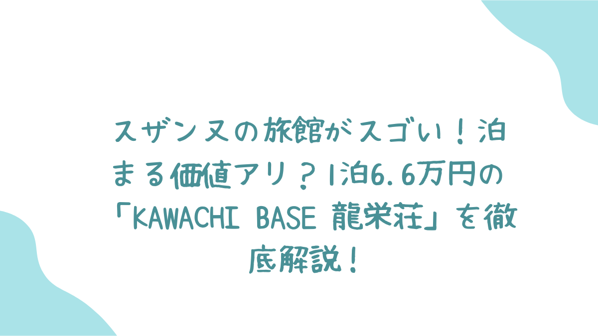 「KAWACHI BASE 龍栄荘」は 1泊6.6万円 という高級旅館の価格帯に位置しますが、それに見合う価値があるのか気になるところです。