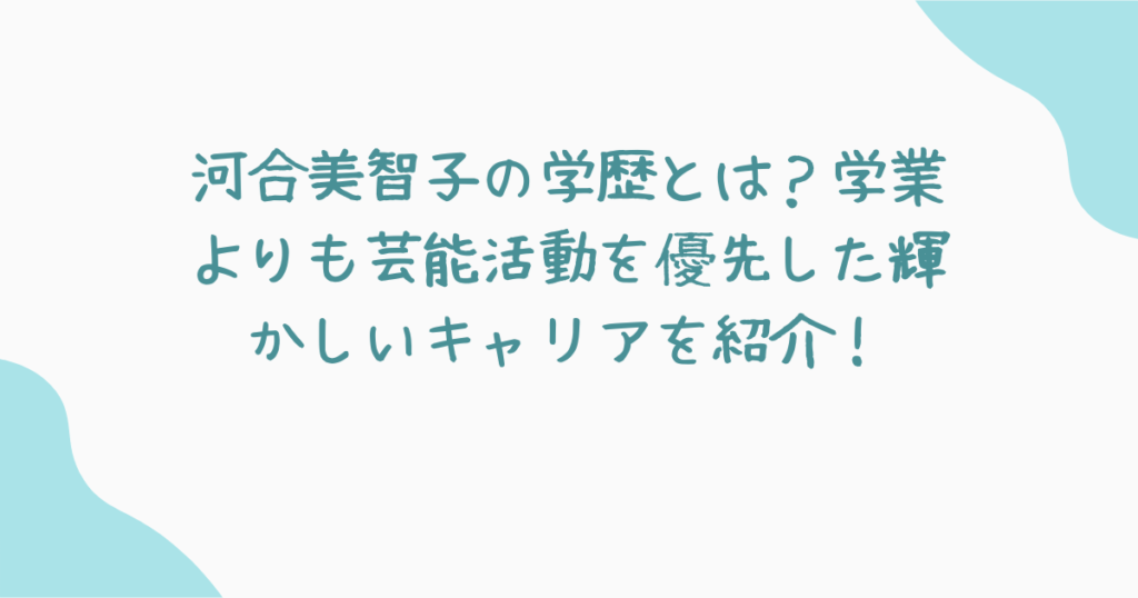 河合美智子さんは大学に進学していません。高校時代に芸能界入りし、多忙な生活を送っていたため、大学進学を選ばなかったのです。