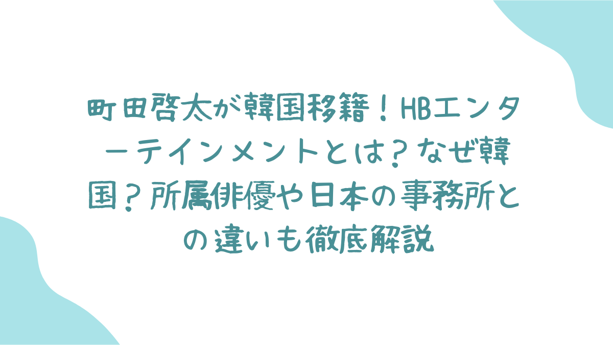 【速報】町田啓太が韓国大手HBエンターテインメントと契約!移籍の真相と世間の反応
