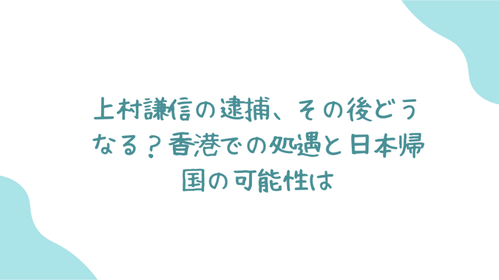 上村謙信の逮捕後、どのような処罰が待ち受けているのでしょうか?香港の法律を確認しながら、日本帰国の可能性を考察します。