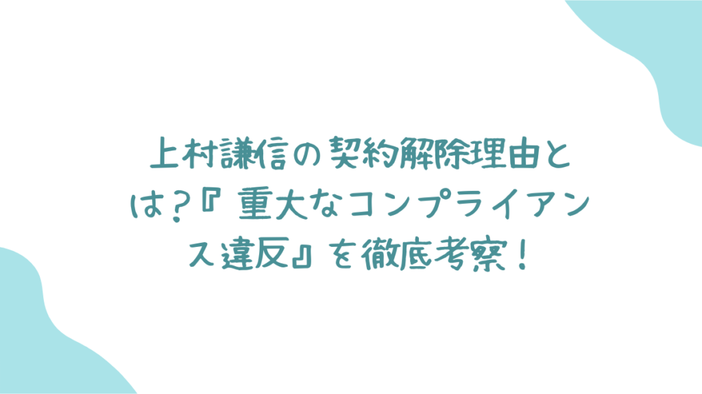 「上村謙信の契約解除理由とは?『重大なコンプライアンス違反』を徹底考察!」 という記事を以前公開しましたが、その後 衝撃的な事実 が明らかになりました。