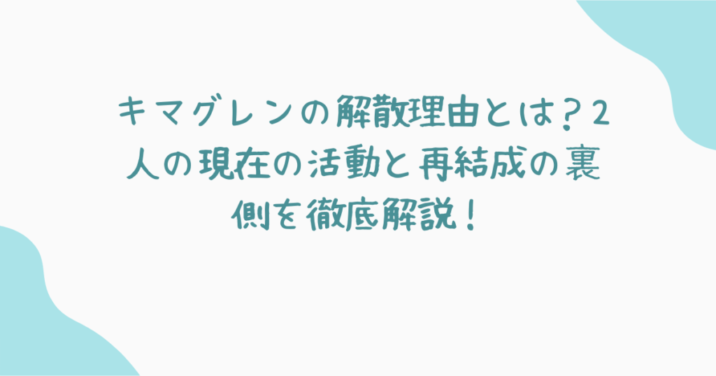 キマグレンの解散には、公式に発表された理由と、その裏に隠された事情があります。