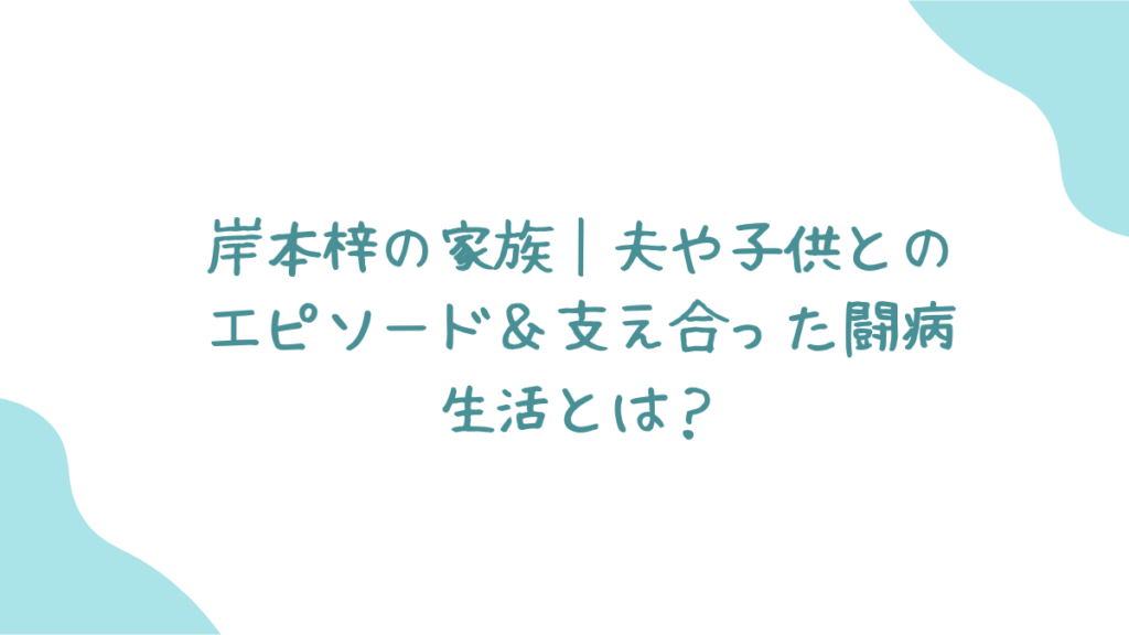 本記事では、岸本梓さんの家族構成や、夫や子供とのエピソード、闘病生活での家族の支え に焦点を当てて振り返ります。