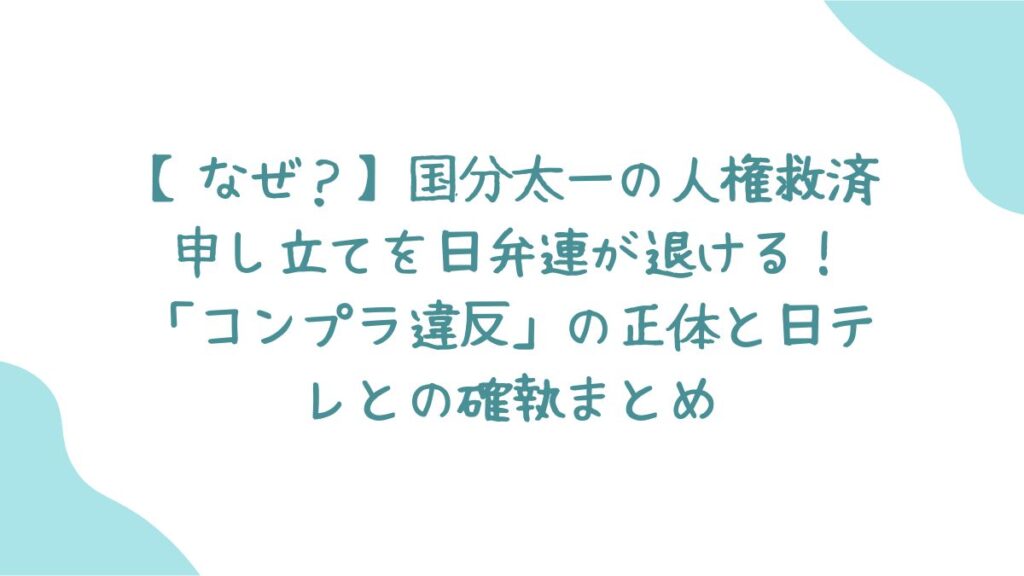 これは、日弁連が「白か黒か」を判定する裁判所ではないためです。「警告や勧告を出すほどの重大な人権侵害とは断定できない(調査終了・不措置)」という着地であり、国分さんの潔白が証明されたわけでも、日テレの完全勝利でもない、という玉虫色の結果と言えます。