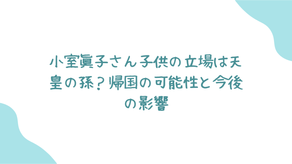 さて、まず一番気になるところ。眞子さんのお子様は、将来の天皇陛下から見て「お孫さん」にあたるのか、そして皇室においてどのような立場になるのか。このあたり、法律と血縁が絡み合って少々ややこしいんですよね。