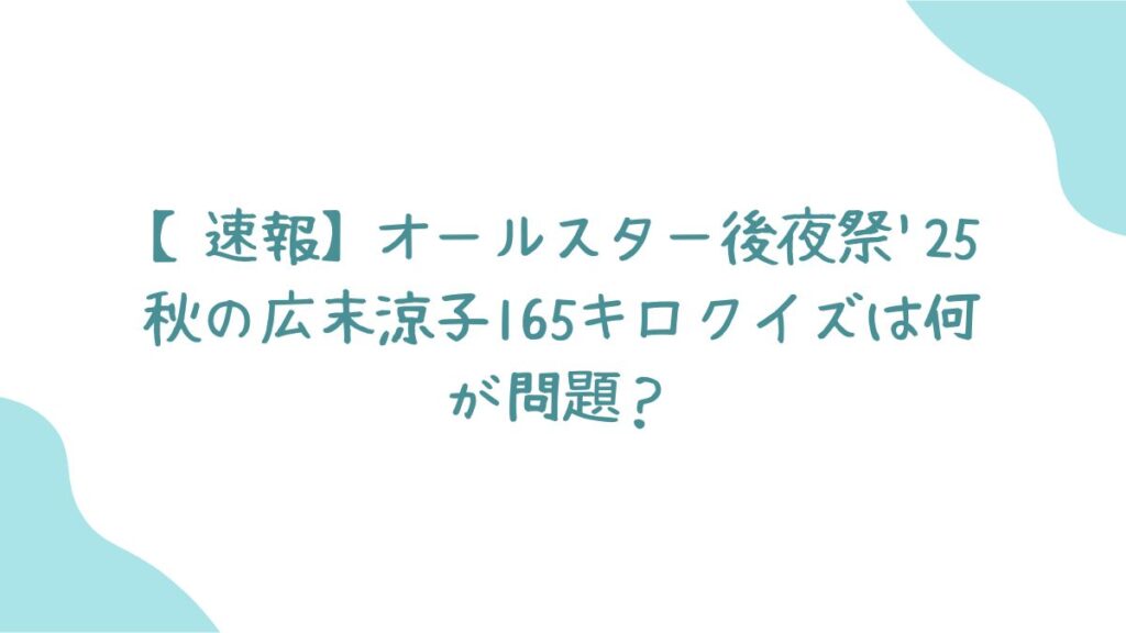 今回のオールスター後夜祭’25秋で放送された広末涼子さんのクイズ、特に165キロという数字が何が問題だったのか、事務所の抗議からTBSの謝罪まで、速報で分かりやすくまとめてみたので、さっそくチェックしていきましょう!✨
