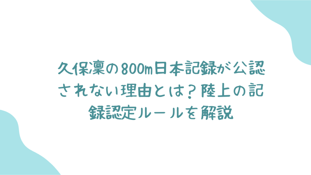 本記事では、久保選手の記録が公認されなかった理由と、陸上競技における記録認定の仕組みを解説します。