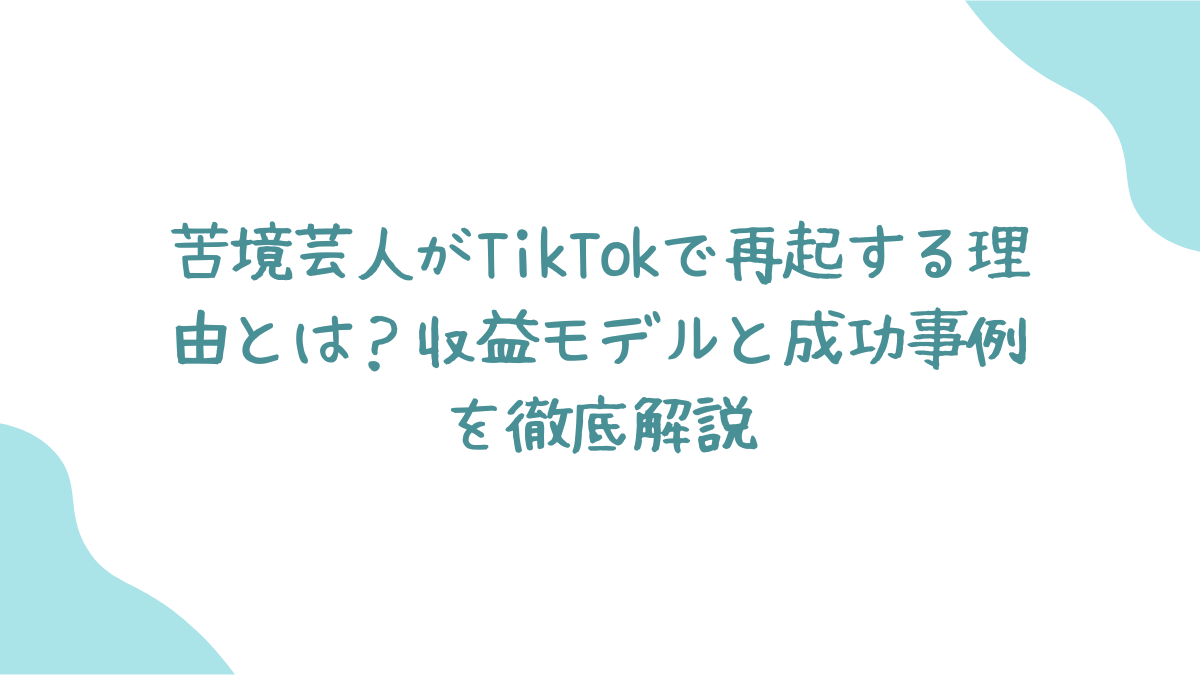 この記事を読めば、なぜ苦境芸人がTikTokに活路を見出し、どのように収益を上げているのか、その仕組みと具体的な事例が分かります。明日からあなたもTikTokでの新たな可能性を探るヒントが得られるでしょう。