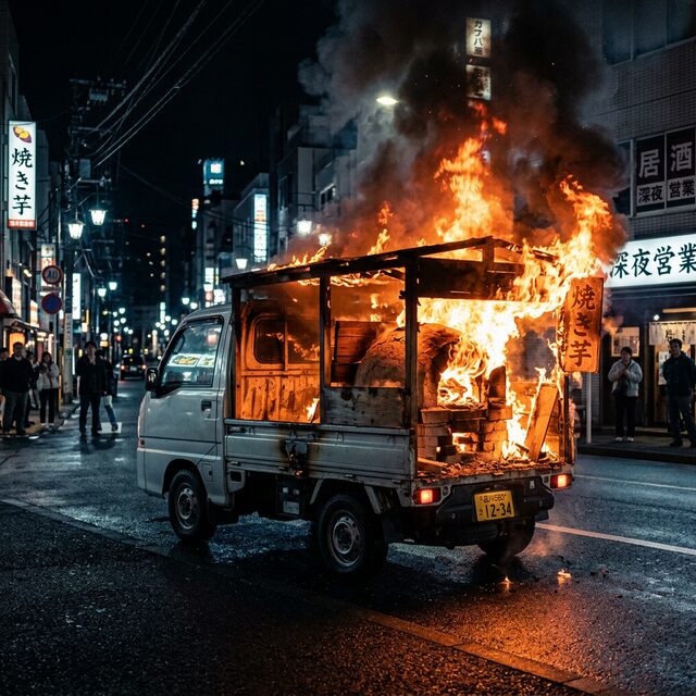 • 衝撃の現場:熊本市で荷台が炎上したまま走行する焼き芋トラックが目撃され、そのまま消防署へ直行。