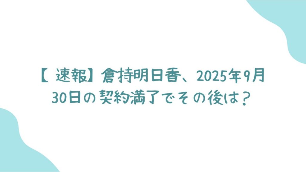 今回は、倉持明日香さんが2025年9月30日で事務所との契約を満了し、その後どうなるのかについて速報をお届けしました!