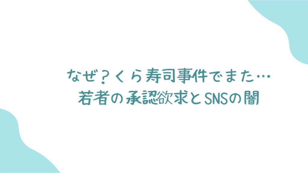 この記事では、今回のくら寿司での出来事を振り返りながら、その背景にあるとされる若者の「承認欲求」や「SNSの影響」について、心理学的な視点も交えながら、一緒に考えていきたいと思います。