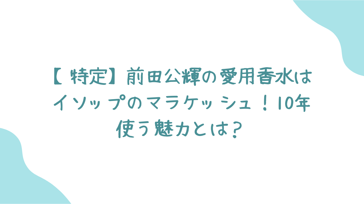 今回は、俳優・前田公輝さんが愛用する香水、イソップの「マラケッシュ」について徹底的に調べてみたよ!