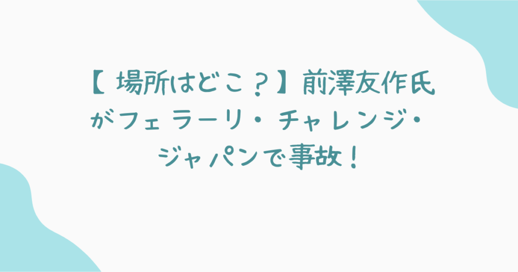 ZOZO創業者の前澤友作氏が宮城県村田町のスポーツランドSUGOで開催されたカーレース「フェラーリ・チャレンジ・ジャパン」で事故に遭いました。この記事では、事故が発生したレース場の場所、レースの詳細、前澤氏の怪我とコメントについて詳しくご紹介します。