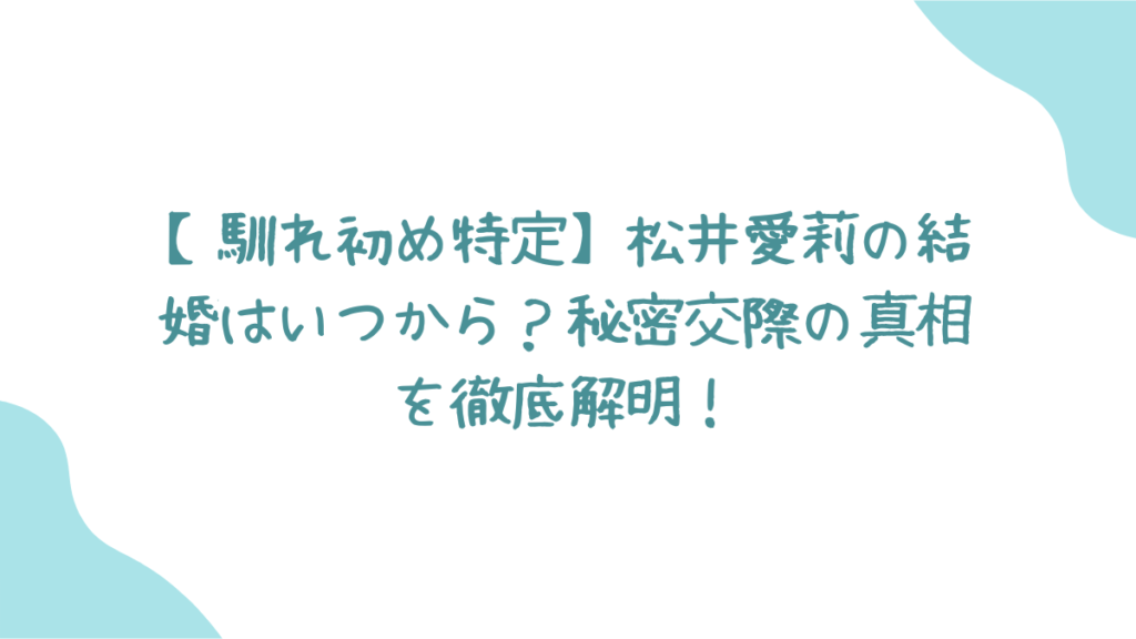 今回は、松井愛莉ちゃんの電撃結婚について、気になる馴れ初めや交際はいつからだったのかを徹底調査しました!