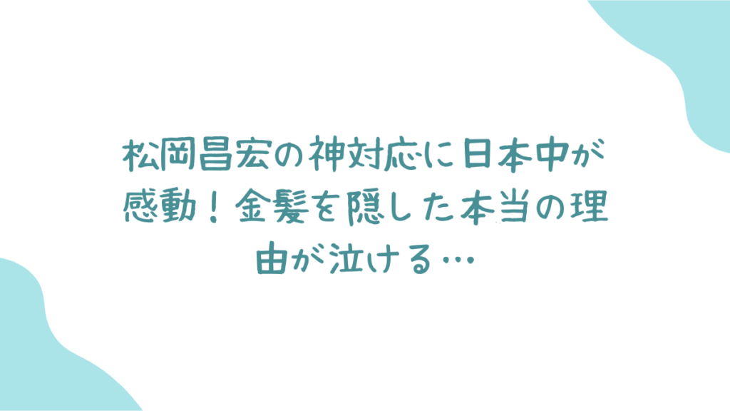 そこで注目されたのが、松岡くんの行動!彼は帽子を脱いでお辞儀するときに、さっと手で金髪を隠したの!😭💖この一瞬の仕草に、日本中が「配慮がすごい…」って感動したんだよね!