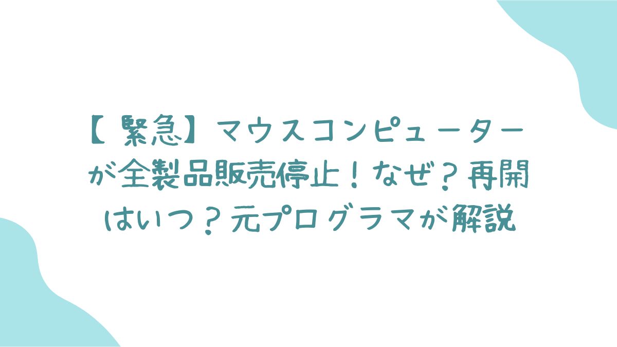 - 2025年12月16日:マウスコンピューターが「一部製品の販売停止」と「2026年1月以降の価格改定(値上げ)」を予告。