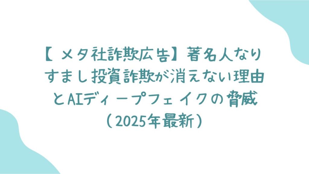 前澤友作氏や堀江貴文氏らがメタ社(Meta)を提訴してから1年以上が経過しましたが、状況は改善するどころか、AI技術(ディープフェイク)の悪用により「本物と見分けがつかない」レベルにまで凶悪化しています。