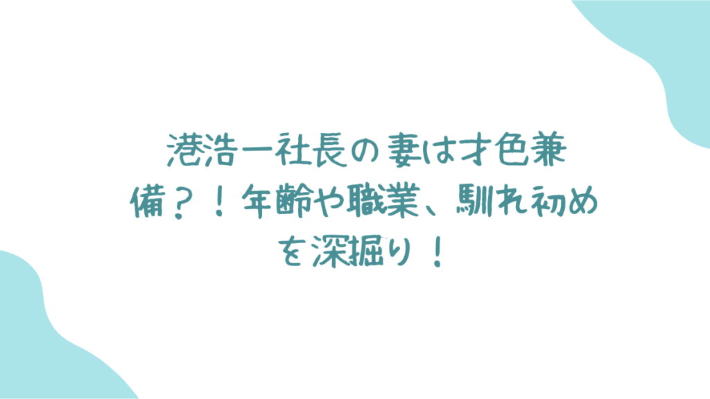 港浩一社長の妻は才色兼備?!年齢や職業、馴れ初めを深掘り!