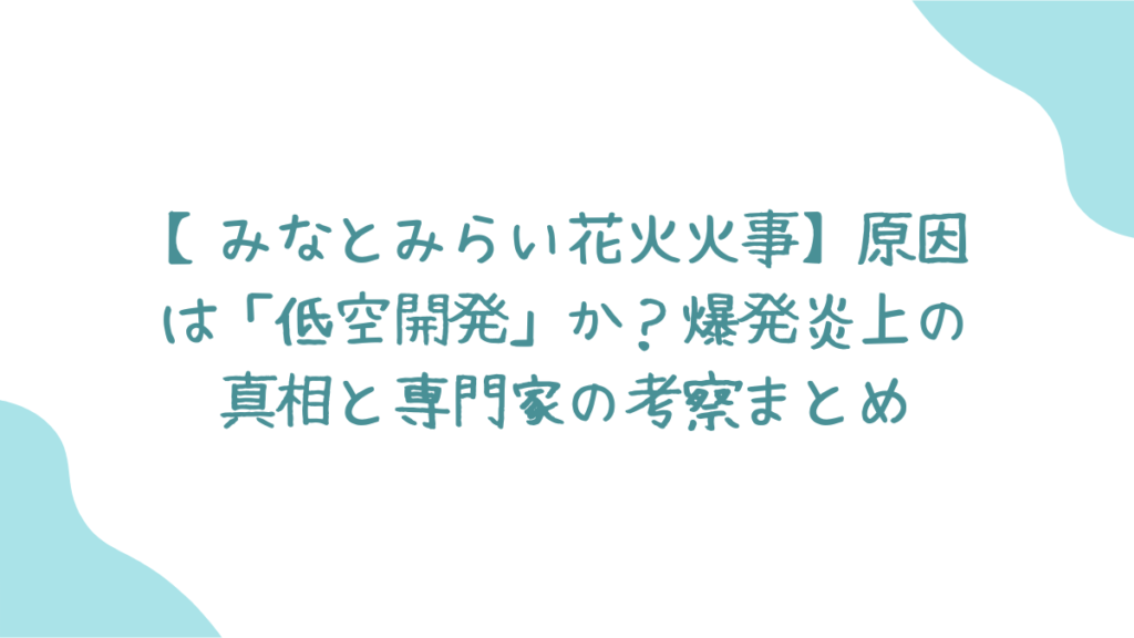 横浜・みなとみらいで起きた花火大会の火災事故。その原因は「低空開発」という技術的なエラーが引き金になった可能性が高いようです。しかし、その背景を深掘りすると、一つのエラーが連鎖して大惨事を引き起こすシステムの脆弱性や、過去の教訓を活かせなかった組織体制の問題が見えてきます。