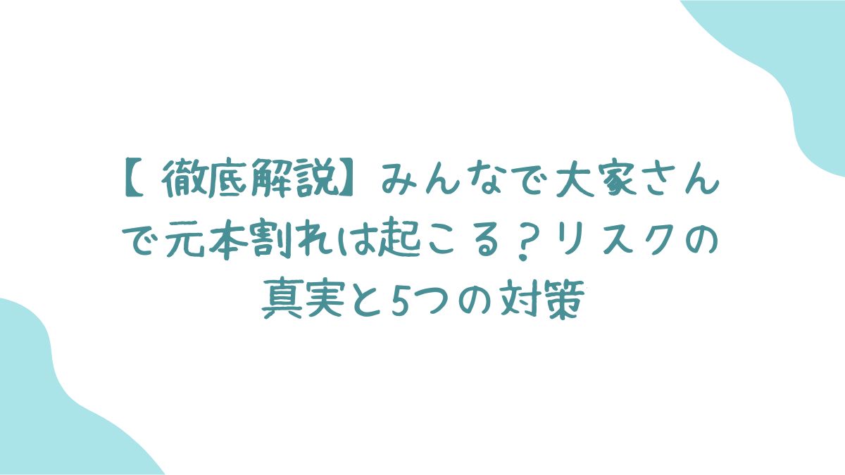 「実は安全じゃない?」みんなで大家さんの元本割れリスクの真実