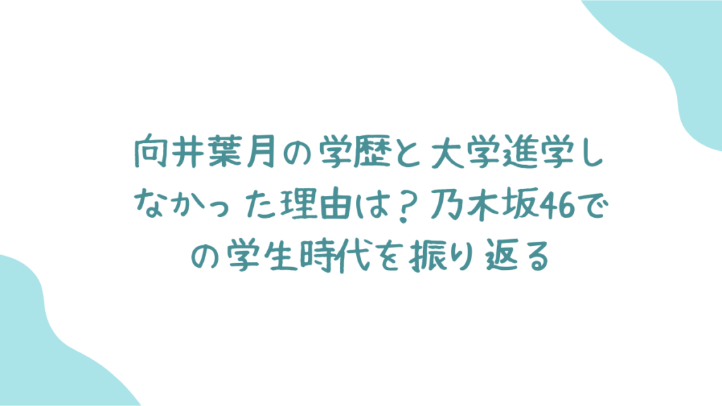 乃木坂46の向井葉月さんが芸能界引退を発表したことで、彼女の学生時代にも注目が集まっています。東京都出身の彼女は、アイドル活動に専念するため大学進学を見送ったそうです。