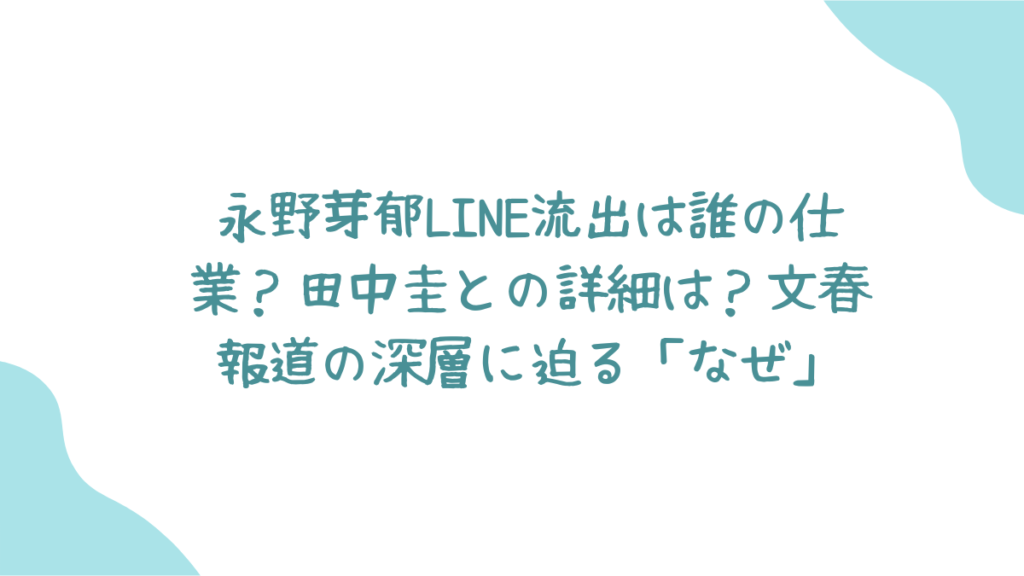 「え、あの永野芽郁ちゃんが…?」「田中圭さん、家族がいるのに…」今回の報道に、驚きと戸惑いを隠せない方も多いんじゃないかしら?!特に、LINEのやり取りが流出したなんて、一体どうしてそんなことに…?って、その「なぜ?」が頭からグルグルしちゃうよね!