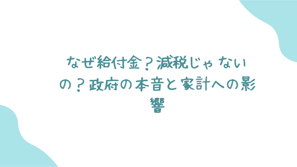 「どうして毎回、給付金なんだろう?」「もっと根本的な対策はないの?」そんな風に感じている方も少なくないはずです。この記事では、そんな皆さんの“モヤモヤ”に寄り添いながら、なぜ政府は給付金というカードを切りたがるのか、そしてそれが私たちの生活にどう影響するのか、一緒に考えていきたいと思います。