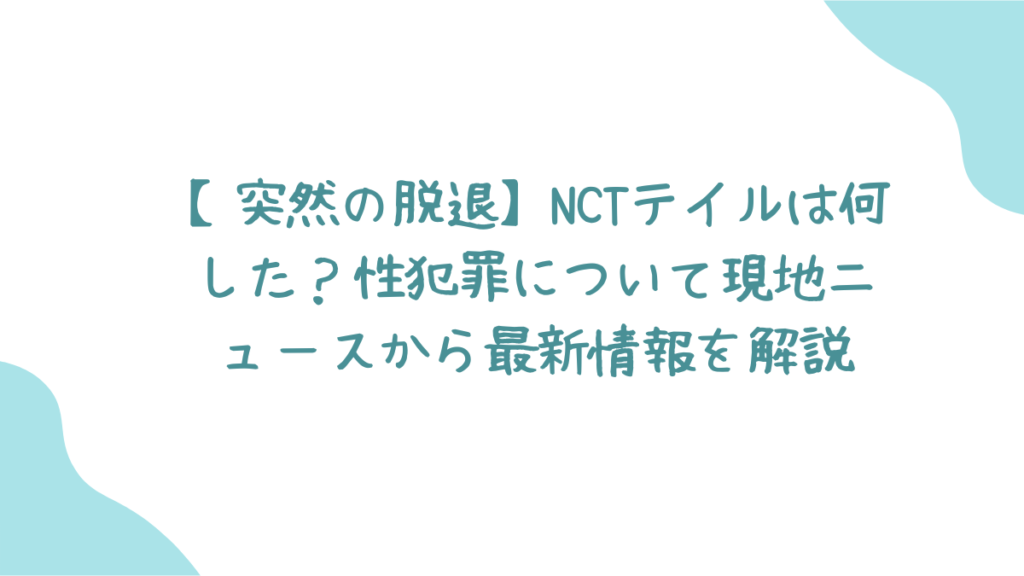 K-POPグループNCTのテイルが性犯罪疑惑で突如脱退。何をしたのか、韓国の現地ニュースから最新情報を追い、脱退の理由と今後の展開を詳しく解説します。日韓の報道の違いにも注目し、事件の全容に迫ります。