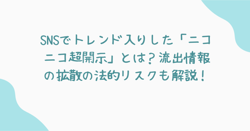本記事では、「ニコニコ超開示」とは何か、なぜこのようなキーワードが生まれたのか、そして流出情報の拡散に伴う法的リスクについて詳しく解説します。
