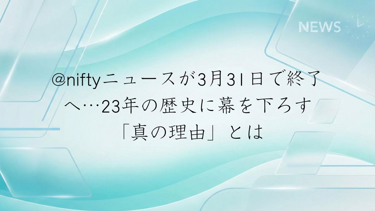 インターネット黎明期から多くのユーザーに親しまれてきたニュースサイト「@niftyニュース(ニフティニュース)」が、2026年3月31日をもってサービスを終了することが明らかになりました。