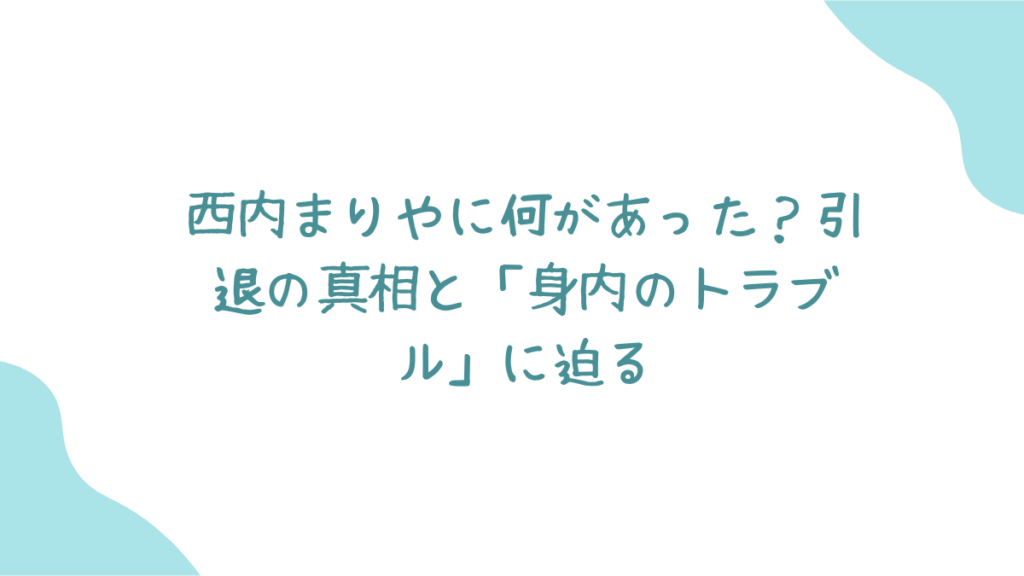 ここまで、西内まりやちゃんの引退と、その背景にある「身内のトラブル」について、色んな情報から考えてきたけど、どうだったかな? まだ謎に包まれてる部分も多くて、ハッキリとした真相は分からないままだけど、まりやちゃんがすごく大きな決断をしたことだけは確かだよね。 色んな情報が飛び交うけど、私たちは冷静に、そして何よりもまりやちゃんの気持ちを一番に考えてあげたいなって思う。 これからまりやちゃんがどんな道に進むのかは分からないけど、どこにいても、まりやちゃんらしく輝いてほしいな!心から応援してるよ!💖 今回の件、あなたはどう思ったかな?続報も気になっちゃうよね~!