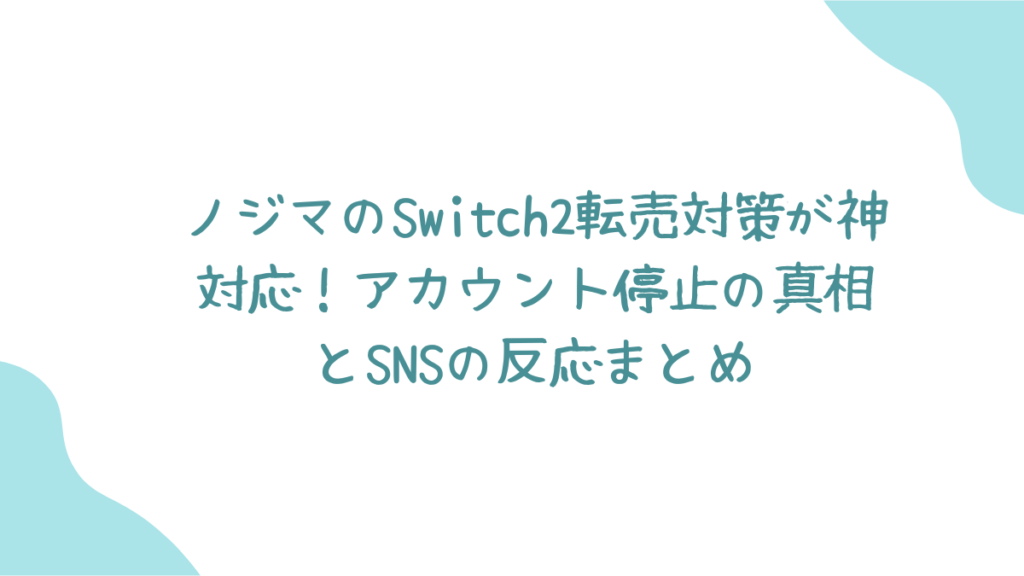 今回は、多くのゲームファンが溜飲を下げたノジマのSwitch2転売対策について、その真相とSNSでの熱い反応を分かりやすく解説していきますね。