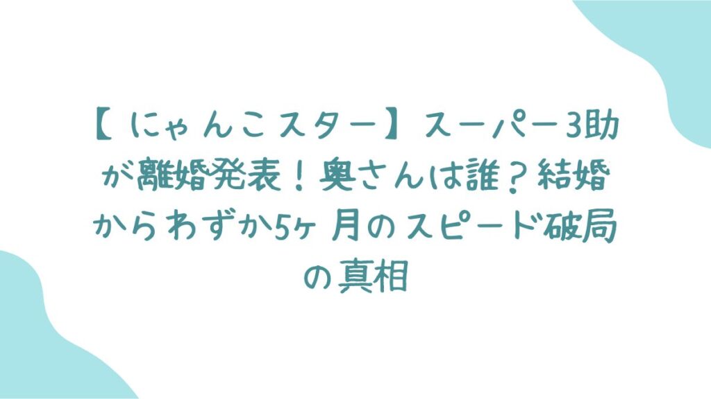 2025年12月25日、世間がクリスマスムードに包まれる中、お笑いコンビ「にゃんこスター」のスーパー3助さんが離婚していたことを発表し、話題となっています。
