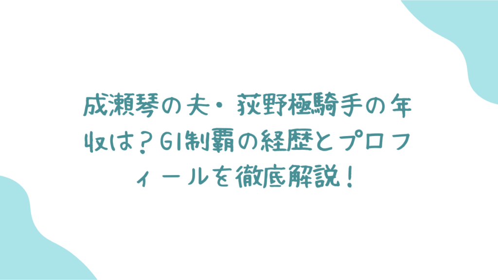今回は、タレント成瀬琴さんの結婚相手としても注目される、JRAの荻野極騎手について、そのプロフィール、G1制覇の実績、そして気になる年収の仕組みなどを解説してきました。 輝かしい実績の裏には、厳しいトレーニングや馬と向き合う真摯な姿勢があることがうかがえます。また、騎手という職業の収入構造についても、少し具体的なイメージが掴めたのではないでしょうか。こうした背景を知っておくと、競馬ニュースを見る際にも、また違った視点から楽しめるかもしれませんね。荻野極騎手の今後のさらなる活躍に注目していきましょう。