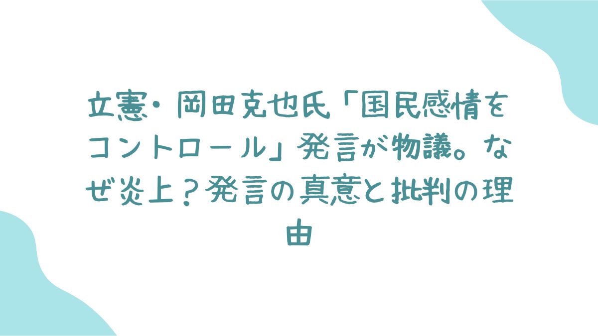 - 炎上の原因は、岡田克也氏の「国民感情をコントロール」という言葉選びが、民主主義的ではないと受け取られたことにある。