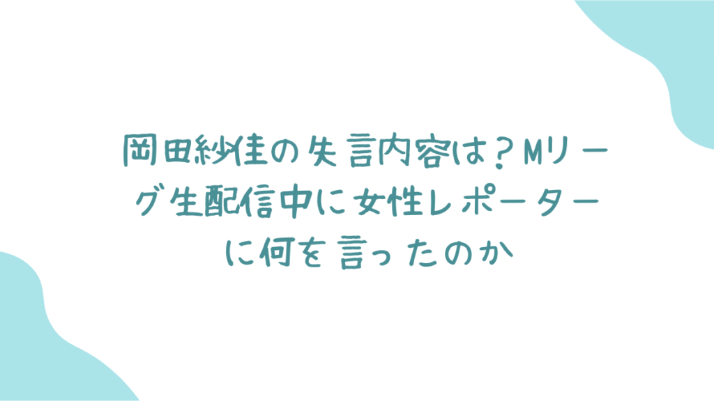 岡田さんは、その様子を見ながら「ハキハキしゃべれんかね、麻雀のこと分からんくせに」と発言。 あの岡田紗佳さんが…!? この発言が公式YouTubeチャンネルで生配信されてしまい、視聴者から「暴言だ!」と批判が殺到し、炎上騒動に発展しました。