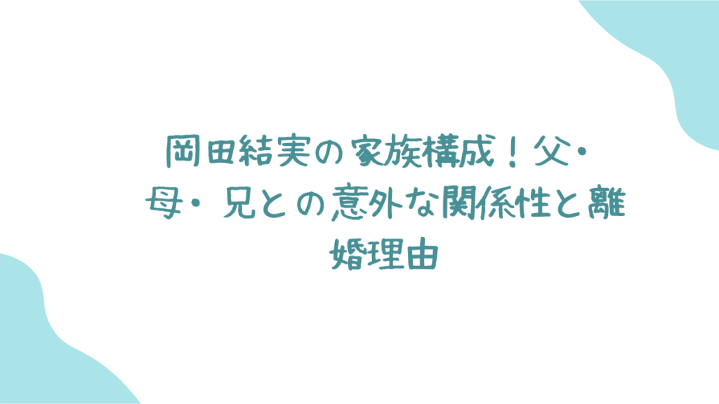 この記事では、結実ちゃんの華麗なる家族構成から、気になる親子関係、ちょっとデリケートな離婚の話題まで、みんなが知りたい情報をまるっとお届けしちゃいます!これを読めば、岡田家のことがぜーんぶ分かりますよ😉