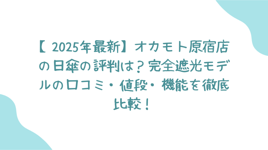 この記事では、オカモト原宿店の日傘に関するあらゆる疑問を解決します。具体的な機能性の解説から、人気モデルのスペックと価格、リアルな口コミ、そして競合製品との徹底比較までを網羅しました。