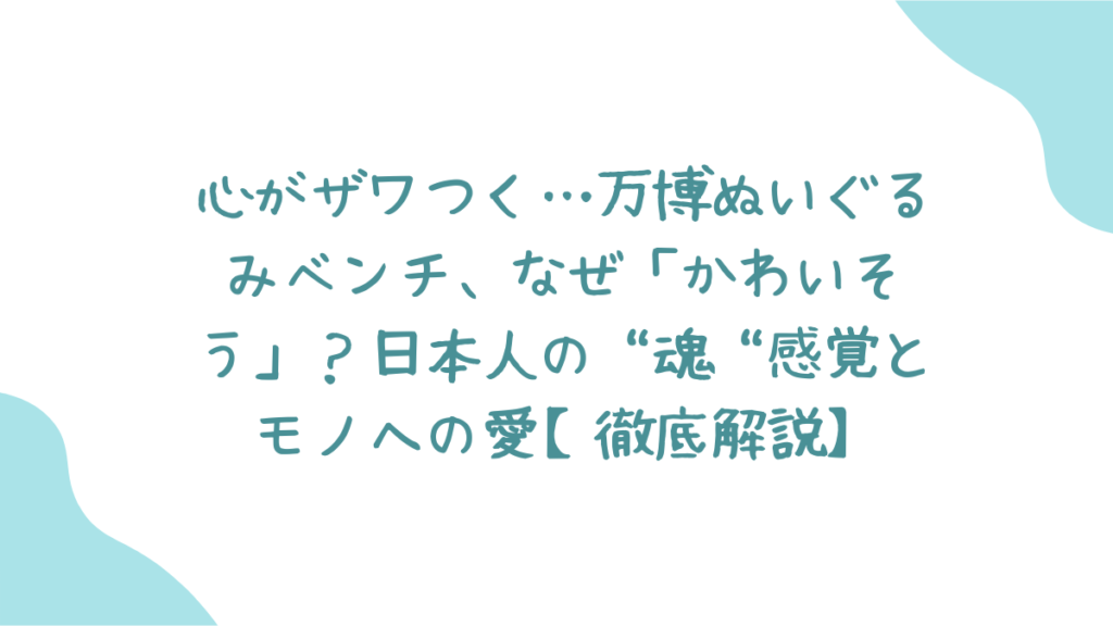 大阪万博の『ぬいぐるみベンチ』の写真を見て、なんだか胸が苦しくなったり、ザワザワしたりしませんでしたか?「かわいそう」「ひどい」…そう感じたのは、あなただけではありません。私も、あの写真を見たとき、言葉にならないような、ぎゅっと胸をつかまれるような感覚がありました。