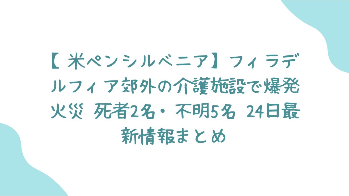 2025年12月23日午後(現地時間)、アメリカ・ペンシルベニア州フィラデルフィア郊外にある介護施設で大規模な爆発と火災が発生しました。