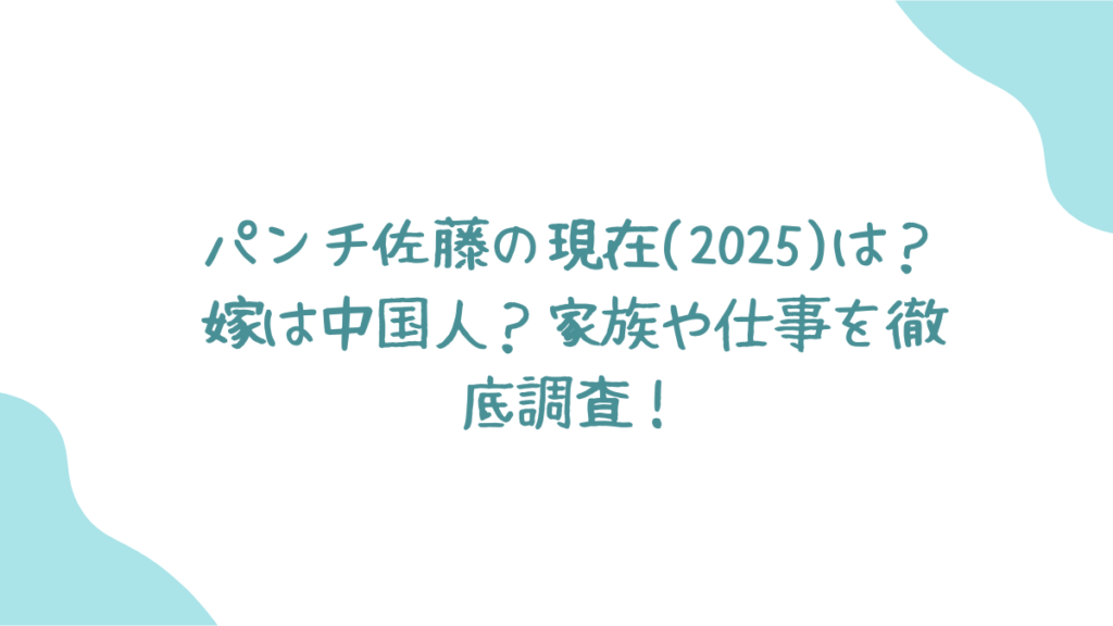パンチ佐藤の現在(2025)は? 仕事はどうなってる?