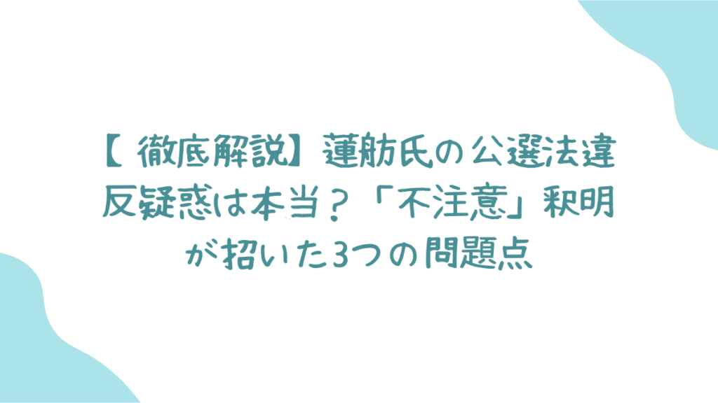 この記事では、一見複雑な公職選挙法の話から、この騒動の裏に隠された日本社会の空気感まで、ライターの近藤が多角的に掘り下げていきます。