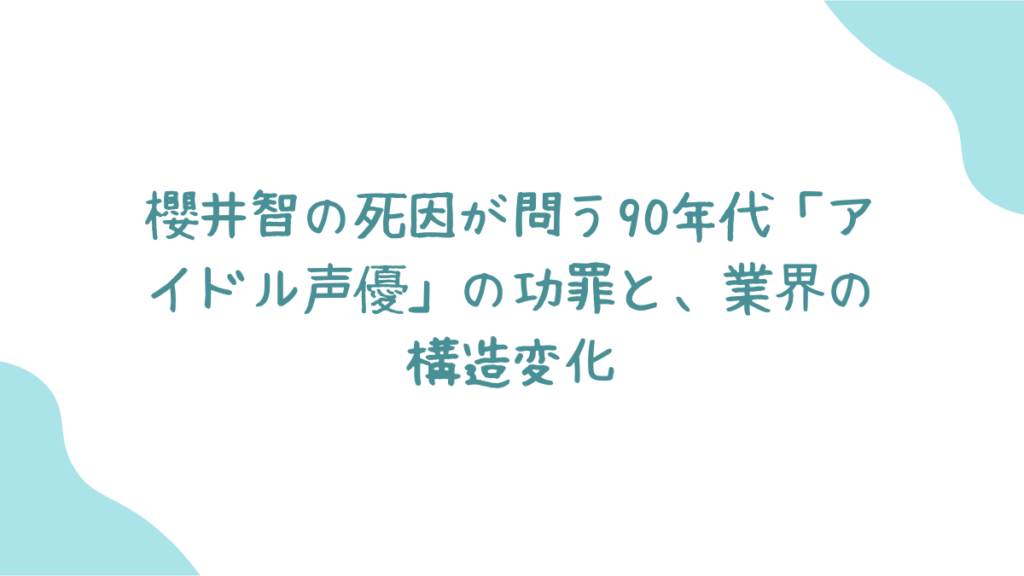櫻井智さんの死因は多臓器癌ですが、その訃報が社会に与えた衝撃の「理由」は、彼女のキャリアそのものが日本の声優業界30年の変遷を体現していた点にあります。アイドル声優の誕生、その光と影、そして現代における声優という職業の多角化とサバイバル戦略。彼女の人生は、そのすべてを私たちに見せてくれました。